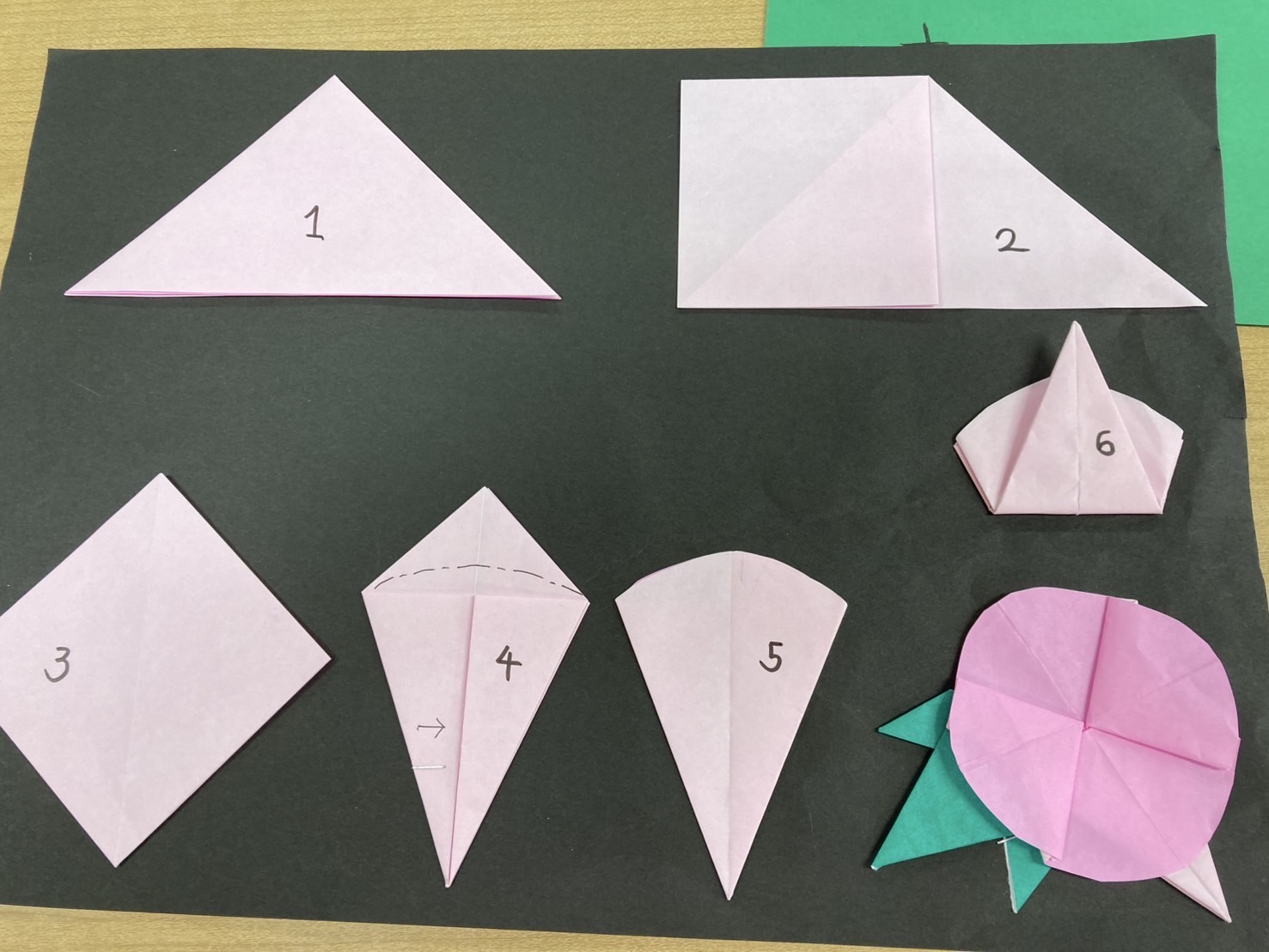 折り紙の作業工程表を見ながら、折り紙にチャレンジ!