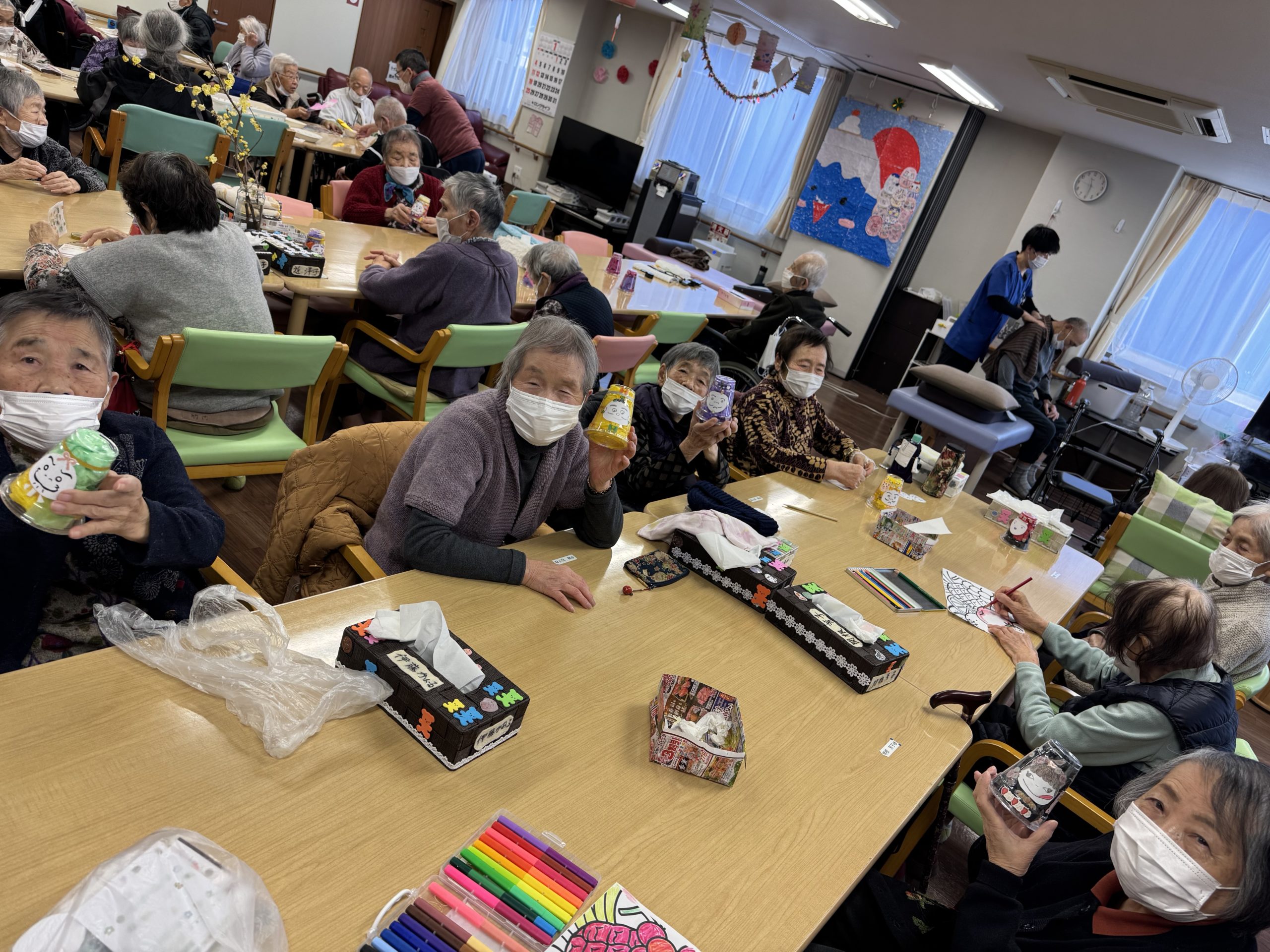 レクリエーションでカラフルだるまを作りました✨