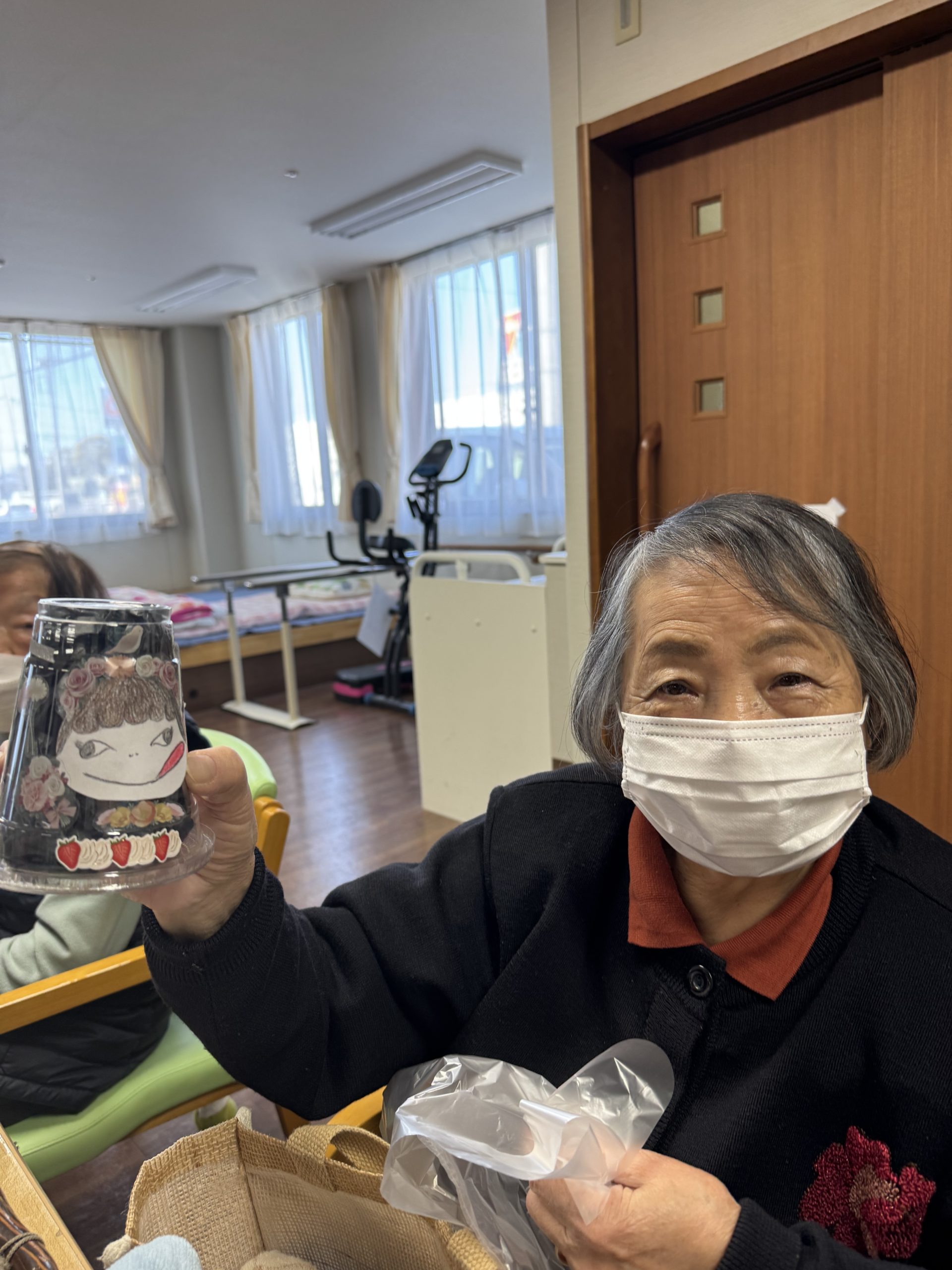 クリアなカップにお好きな顔を描いた紙を貼ってお花紙を詰めます(*´ω`)